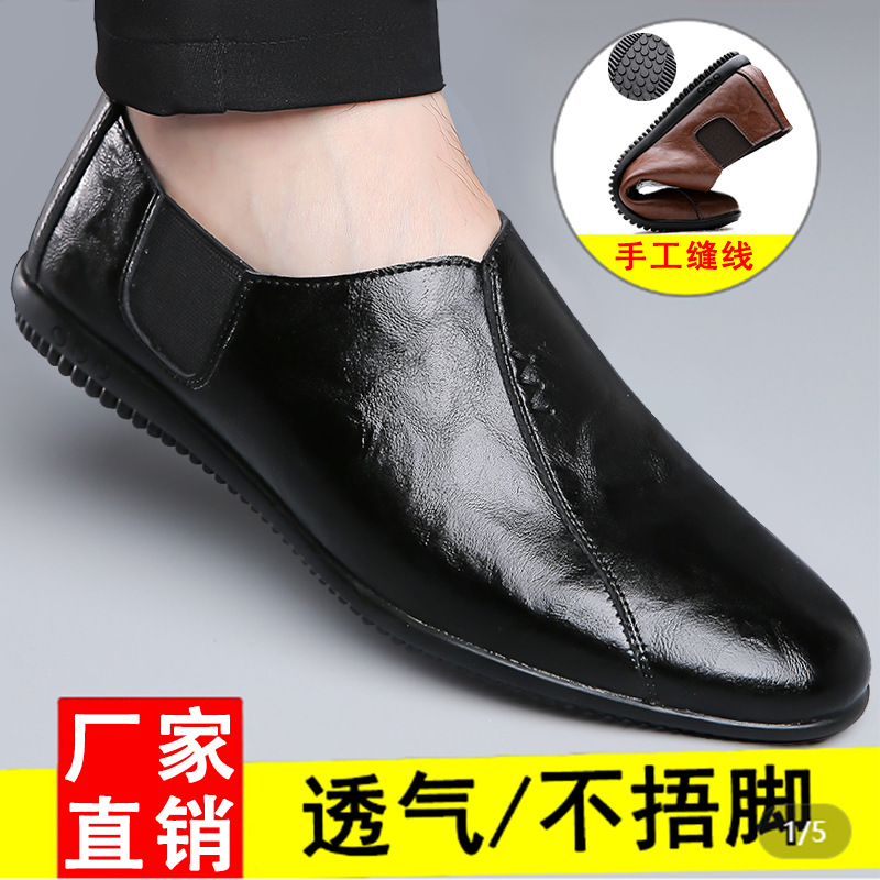 【メーカー直販】革靴の男性は柔らかい底のカジュアルビジネスの平底靴に合わせて通気性の滑り止めの中年のお父さんの靴を履いています。