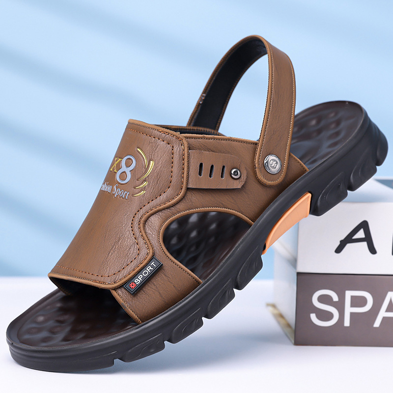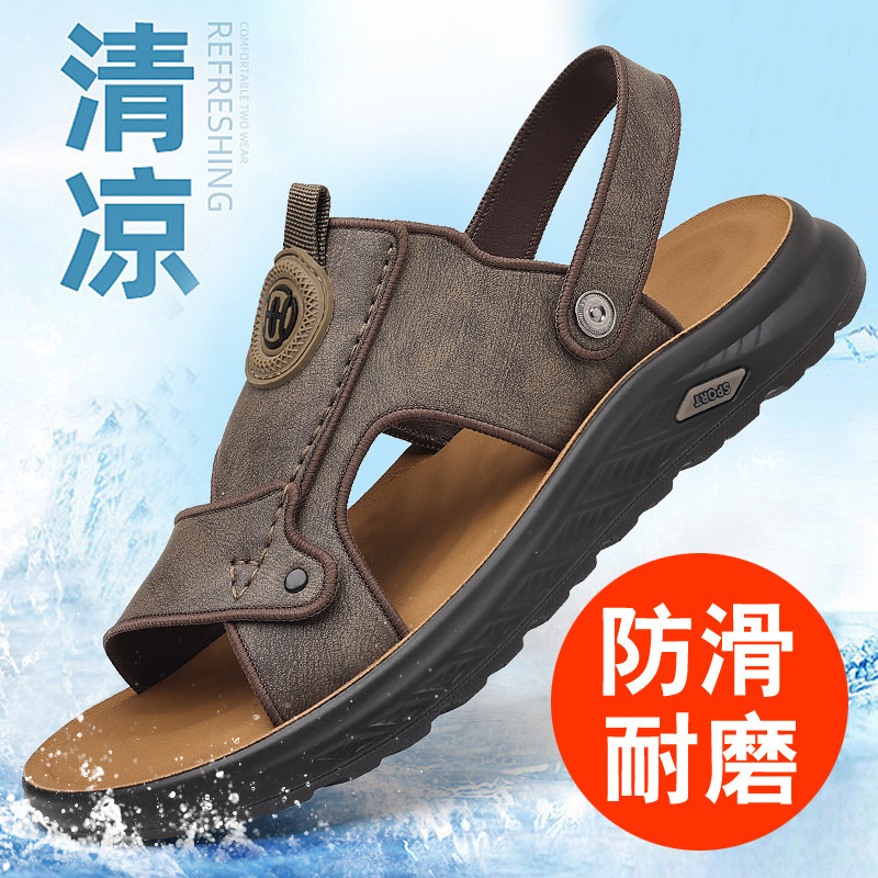 貿易夏のメンズ牛革サンダル 2023 新しい本革滑り止め屋外若者韓国スタイルのビーチサンダルトレンディ