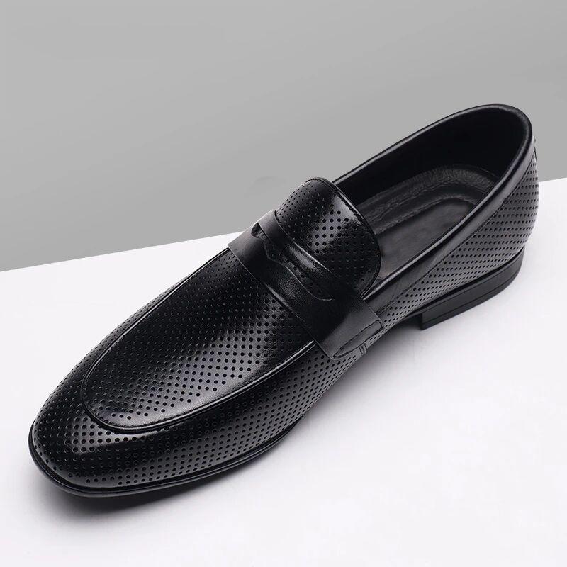 2025 メンズビジネスカジュアル中空革靴金属バックル装飾ファッション軽量通気性夏の通勤靴