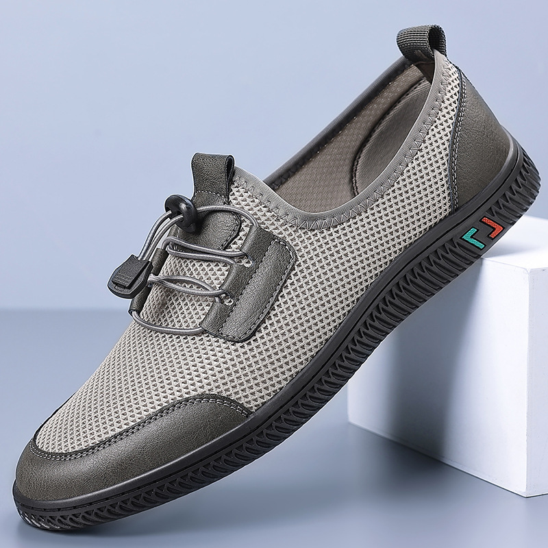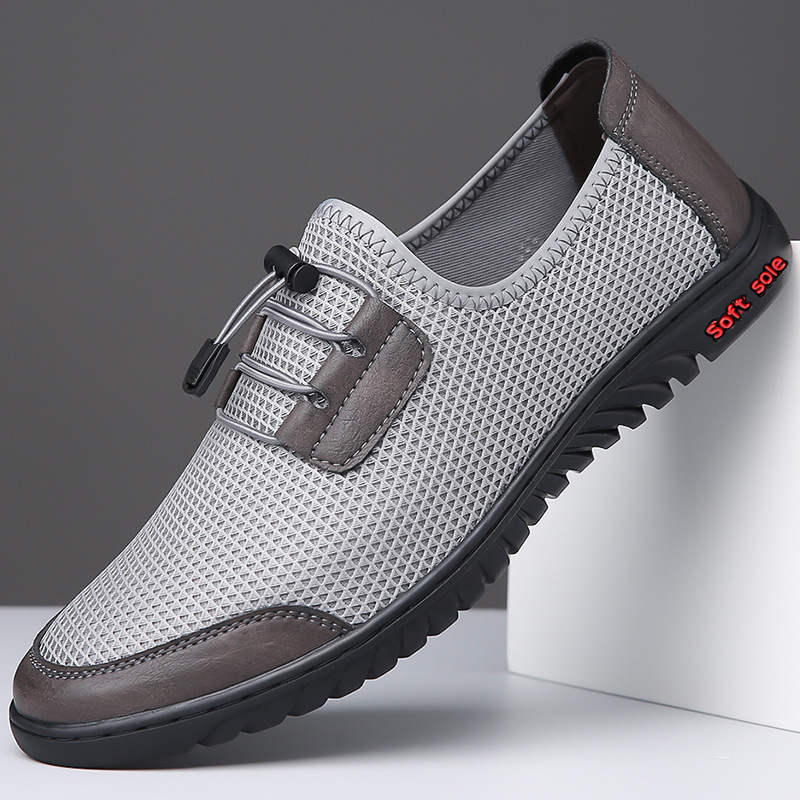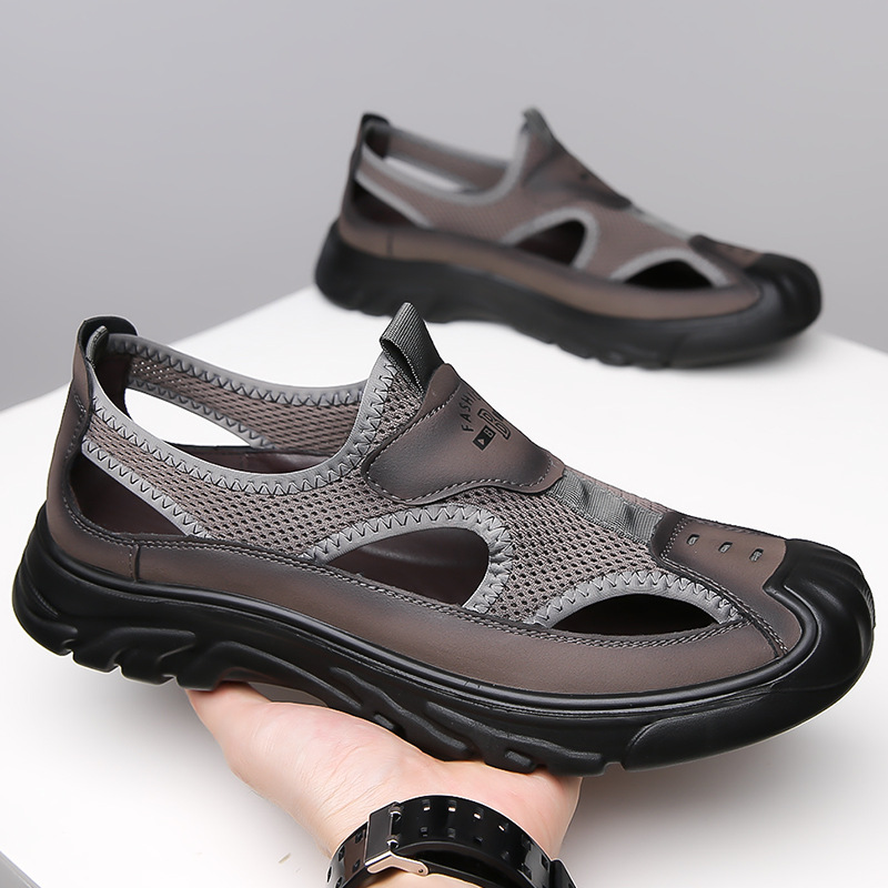 2025 夏カジュアルメンズレザーシューズソフトソール通気性中空靴アウターメッシュドライビングシューズメンズビーチ下駄