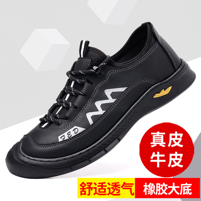 2023夏の新型革靴男性滑り止め軟皮軟底通気レジャー白靴メーカー直販