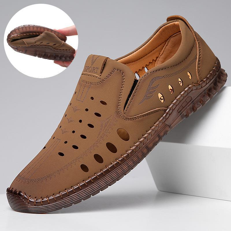 男性カジュアル靴夏の新型透かし彫り滑り止め通気性牛筋底皮サンダル