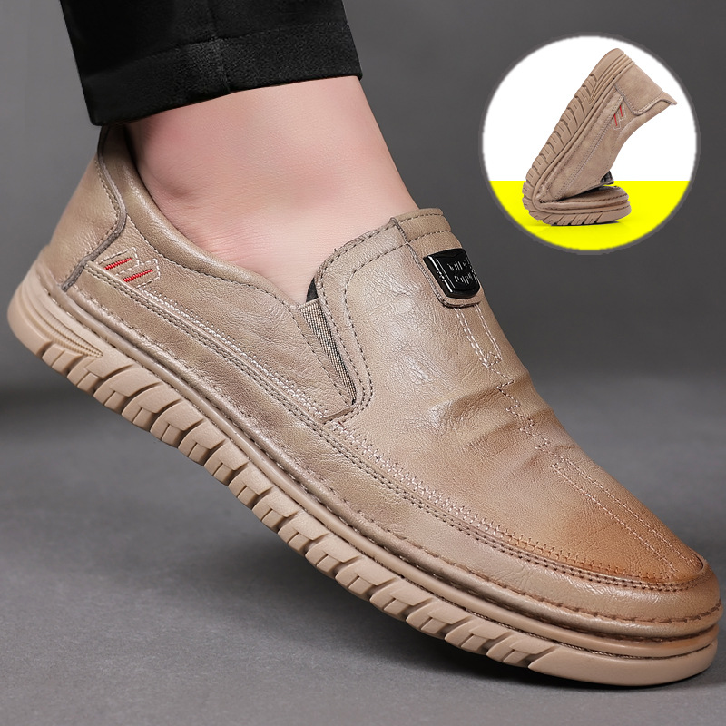革靴男性2023新型春秋真皮通気ビジネスカジュアル靴ソフト底滑り止めファッション仕事靴