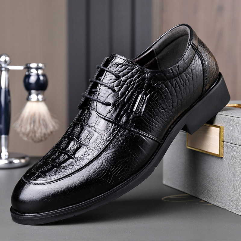 革靴男2023春秋新作牛革ビジネスカジュアル靴ワニ柄ファッション結婚靴代発一