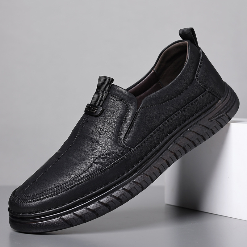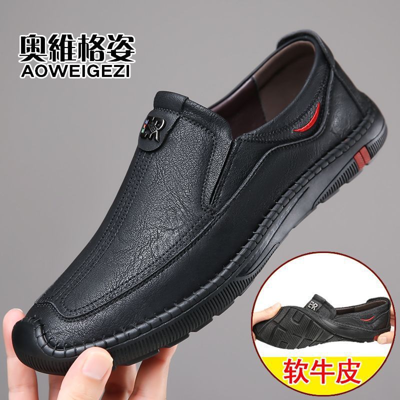 【メーカー直販】革靴の男性は柔らかい底のカジュアルビジネスの平底靴に合わせて通気性の滑り止めの中年のお父さんの靴を履いています。