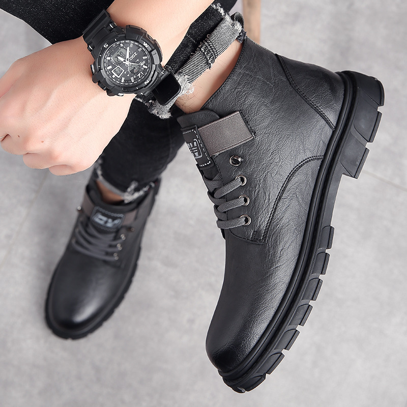 パマ特冬の新型韓国版レトロなマーティンブーツにベルベットをつけて保温滑り止めの高さを厚くして流行の男性靴に合わせる