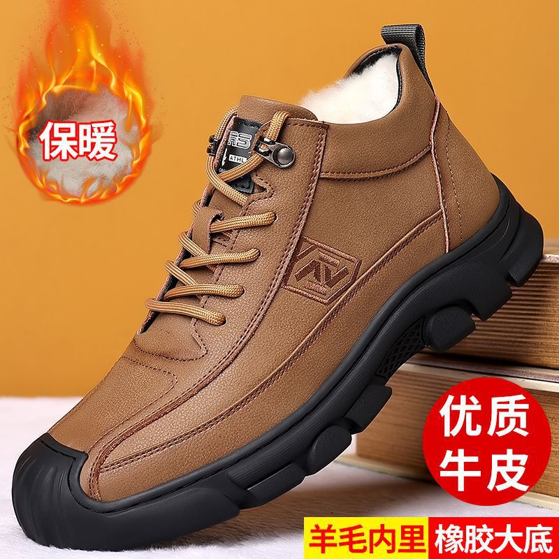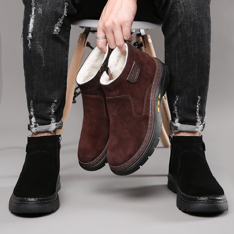 流岐商業貿易冬の男性は靴ウール靴の滑り止め耐摩耗性ファッション保温牛革ブーツ2213を厚くした