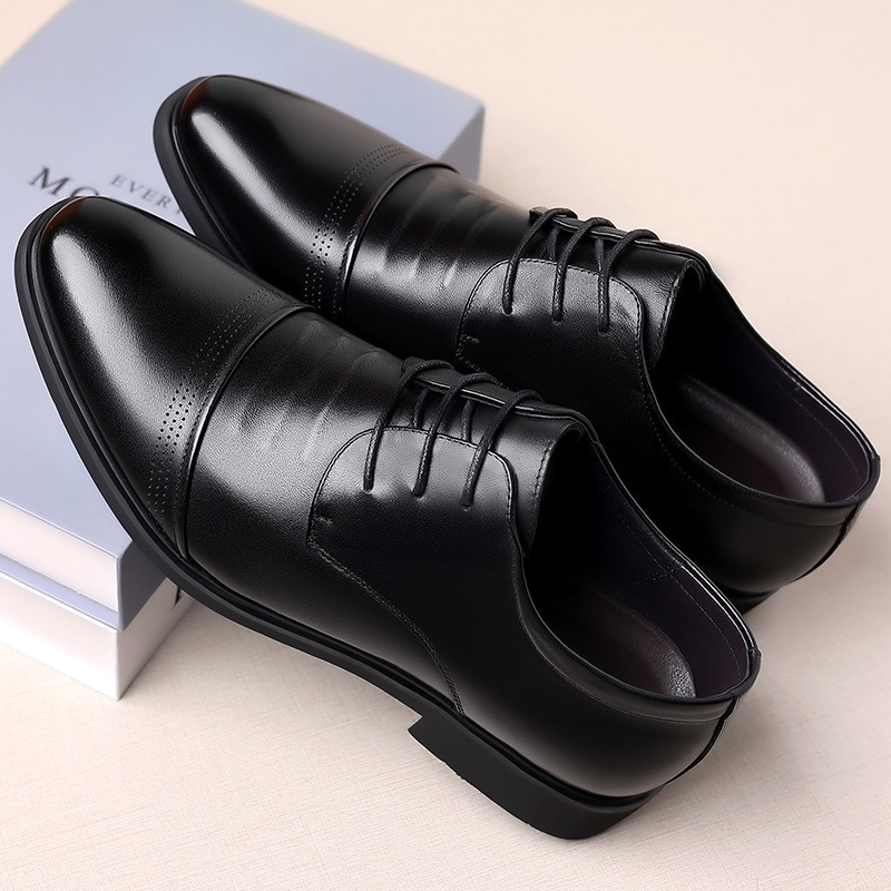 新型正装ビジネス男性靴本革通気性向上靴ステルス高さ6cm男性靴シングル