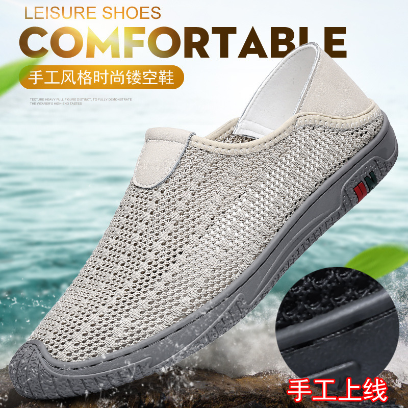 新商品の男性靴春夏のカジュアルシューズはネットの通気ネットの面を踏んで飛んでクロスボーダーの男性のランニング運動靴を編みます。