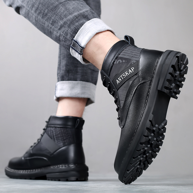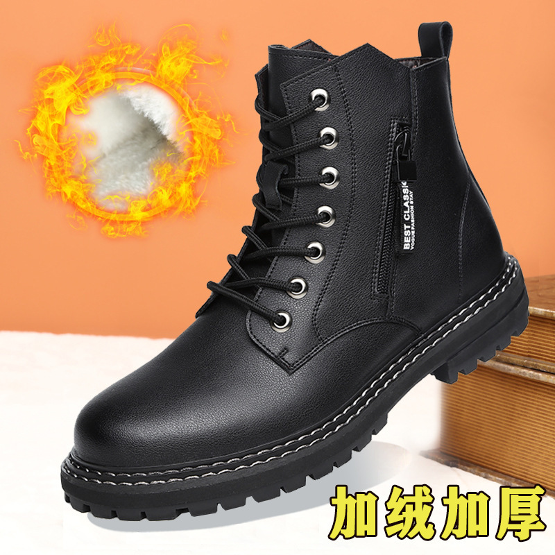 マーティンブーツ男高組英倫風韓版真皮工装靴加毛保温ブーツ中組男靴冬男靴