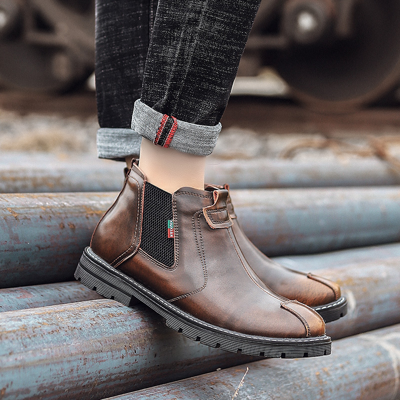 チェルシーブーツ男性用マーティンブーツ男性用ショートブーツ男性用ファッションカジュアルブーツスリーブ英国男性用靴レトロ本革男性用靴