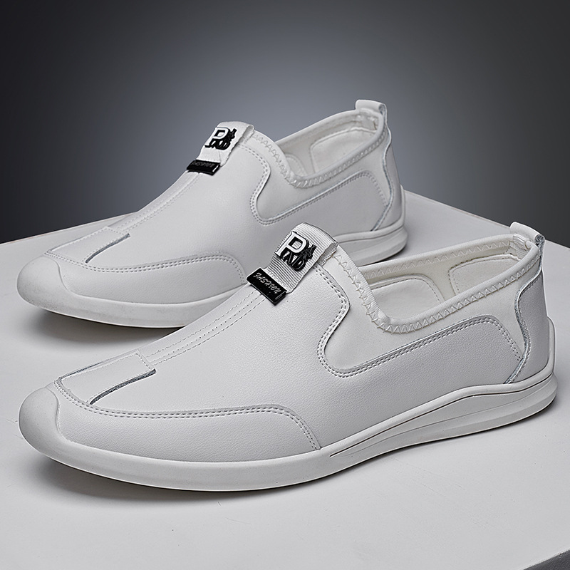 低いカジュアルな丸い頭の秋の男性の白い平と通用の怠け者の靴の牛革の足は柔らかい顔の柔らかい底のファッションの靴の男を漕ぎます。