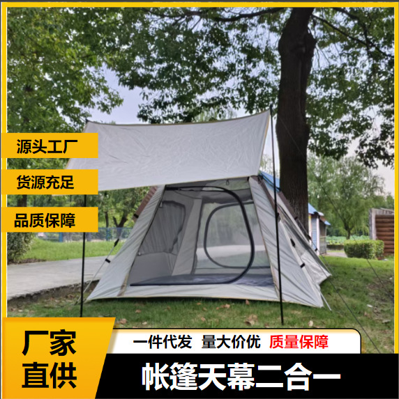 屋外キャンプテントの天幕二合一は折り畳み可能な携帯型黒ゴム日焼け止め観光公園のキャンプ装備セットです。
