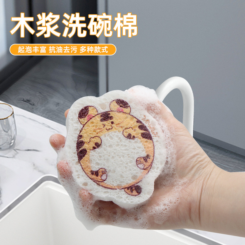 工場卸売 圧縮木材パルプ綿食器洗い用スポンジ 漫画印刷スポンジ キッチン食器洗い用たわし 生分解性