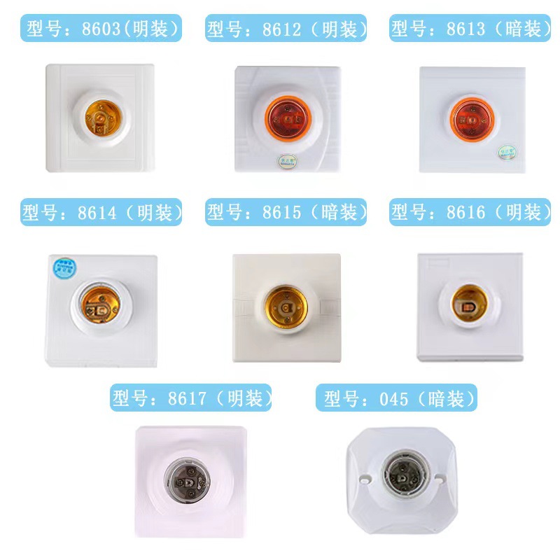 卸売高出力86型セラミックソケット明装86型ソケットe27ねじ口平ソケット角型ソケット
