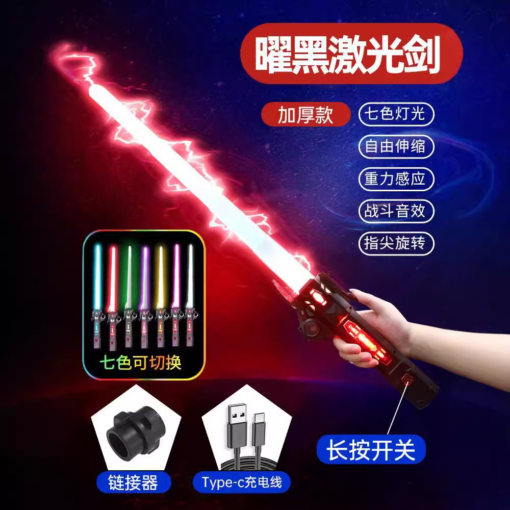 国境を越えて厚い照明音楽チタン銀レーザー剣子供屋外玩具七色灯戦闘伸縮剣プレゼント