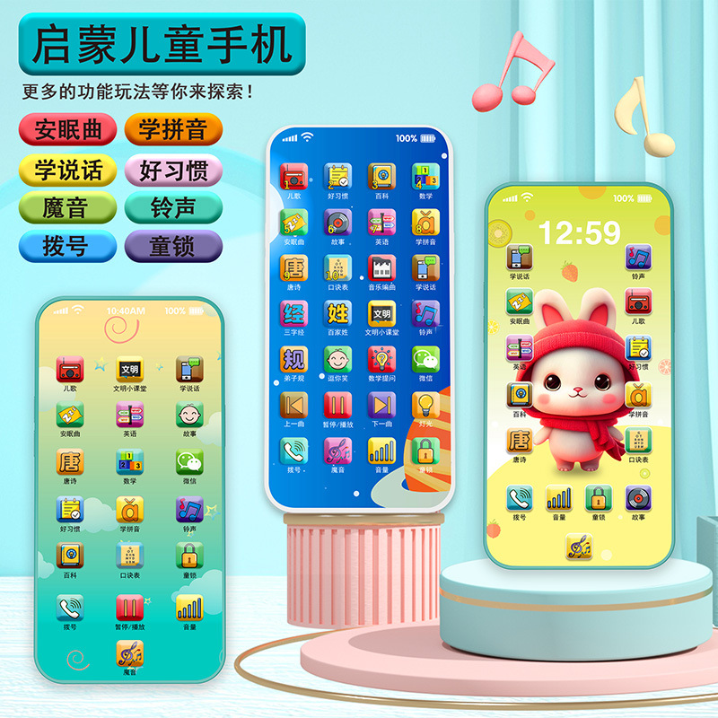 啓蒙児童多機能携帯電話早教神器知育玩具照明音楽充電版ボタン学習携帯電話