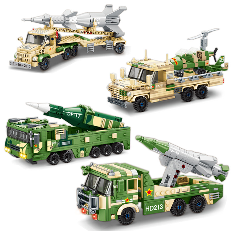 明迪K0680ミサイル車模型軍事科教運搬車の回転翼機は積み木のおもちゃの男の子のプレゼントをつづり合わせます。