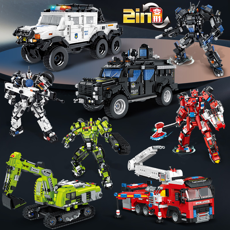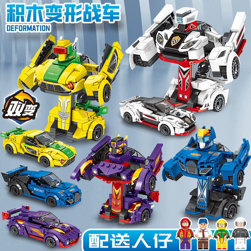 ミンディK0503変形積み木戦車少年合わせ玩具車自動車ロボットレーシングモデルプレゼント
