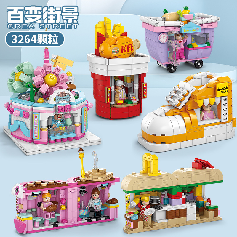 Ll8966国潮積み木街並みシリーズは積み木スーパーのハンバーガー店の模型生花店を飾って贈り物をします。
