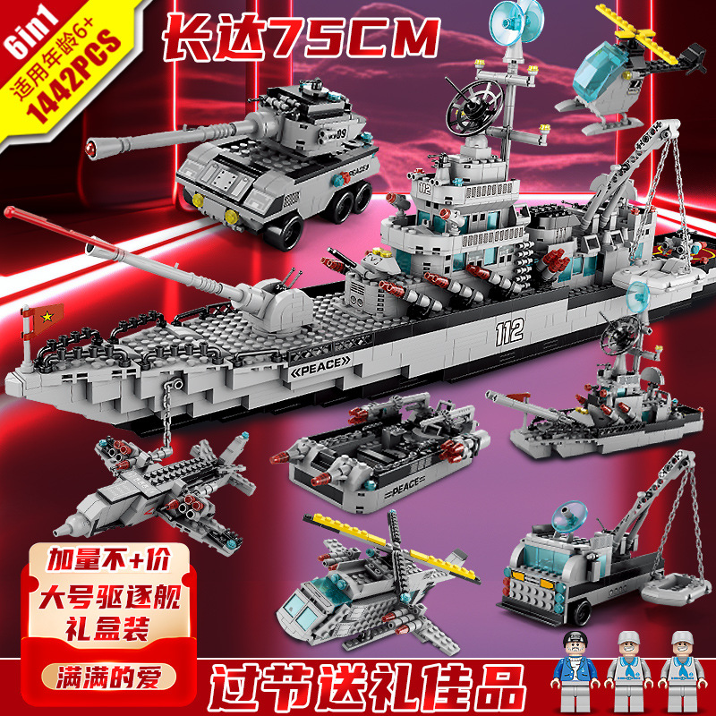 75cmミサイル駆逐艦の組み合わせ玩具積み木六合一大号軍艦飛行機の置物はレゴと互換性がある