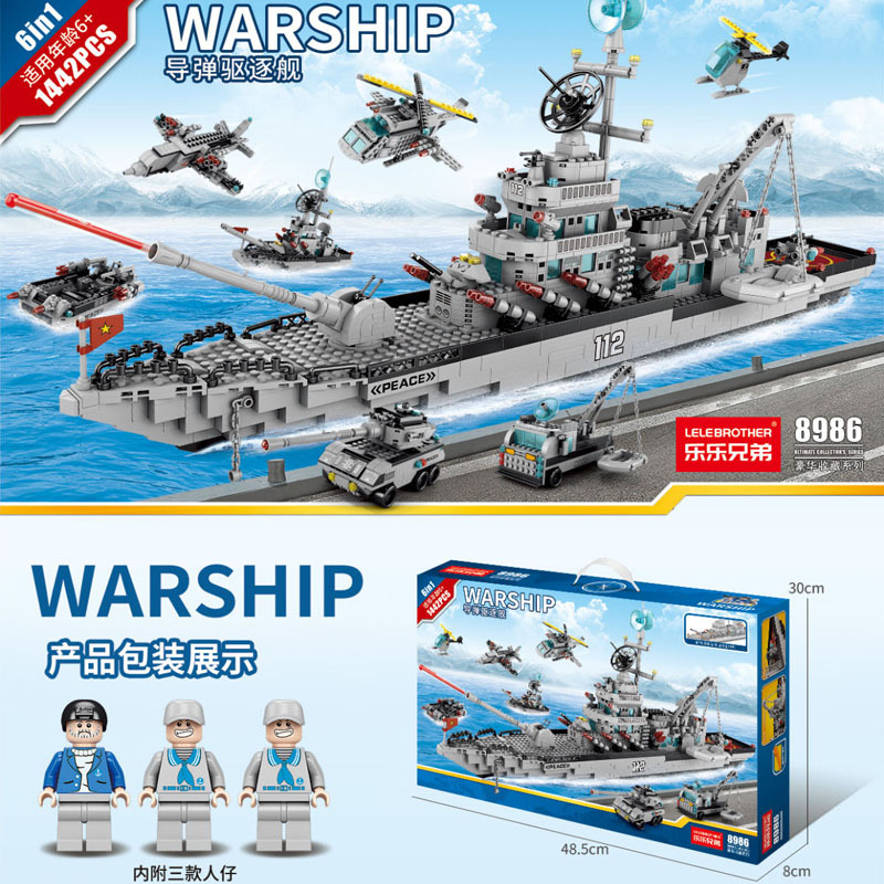 8986六合一ミサイル駆逐艦模型はレゴ中国軍事空母の組み立て積み木礼箱と互換している