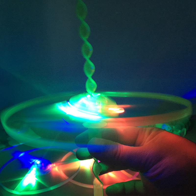 プルラインフライホイールプルラインフラッシュフライホイールフラッシュジャイロ発光ufoフィットネス子供発光おもちゃ卸売