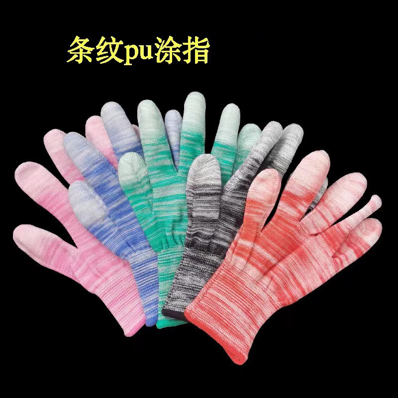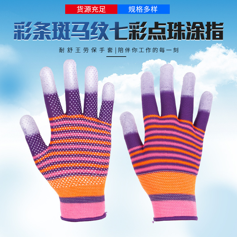 メーカー卸売りカラーバー七彩pu塗装ポイントプラスチック手袋滑り止め点ゴム手袋工場現場作業手袋