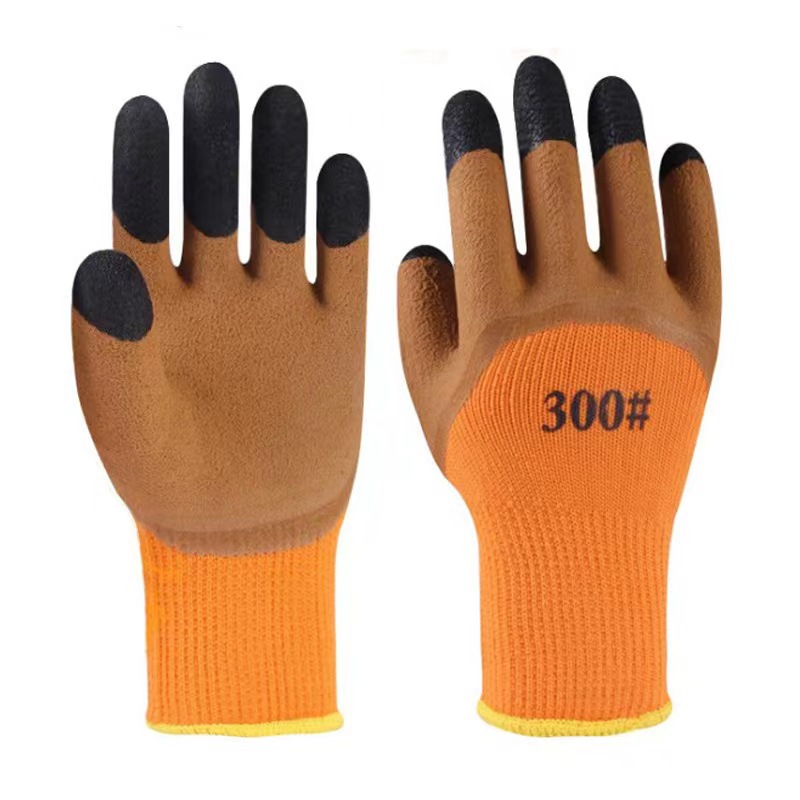 ベルベット保温ベルベット労働保護手袋エンボス毛輪発泡しわ冬冷凍庫作業防護ゴム手袋