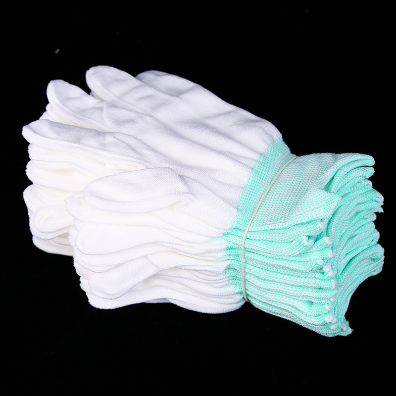 13針のナイロンのクリーン手袋の芯が薄くて、手のポリエステルの弾力性の手袋の白地の電子作業の白色の労働保護の手袋を貼ります。