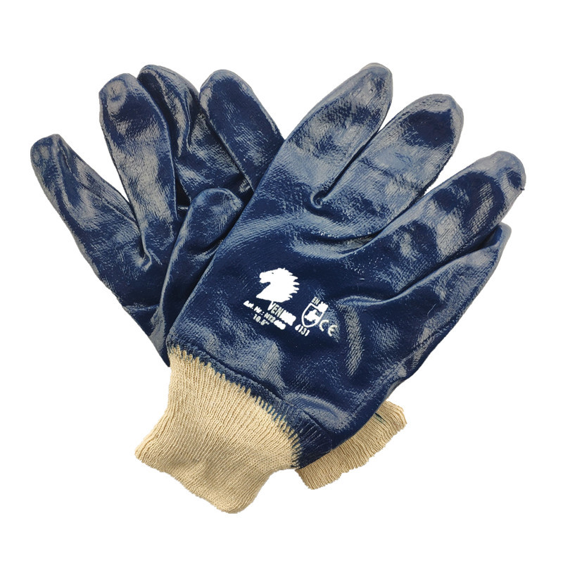 口を締める青い油の手袋の羅口の全浸のゴムのニトリルは油の機械を抵抗して水の労働保護の手袋の卸売りを防ぎます。