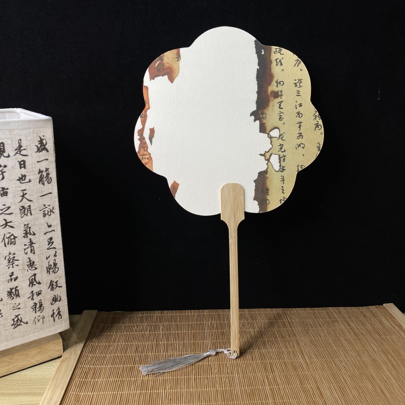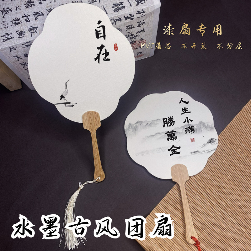 宣紙PVCミニ団扇水墨画漆扇絵の具小扇子漆扇文字金国風漆扇材料DIY