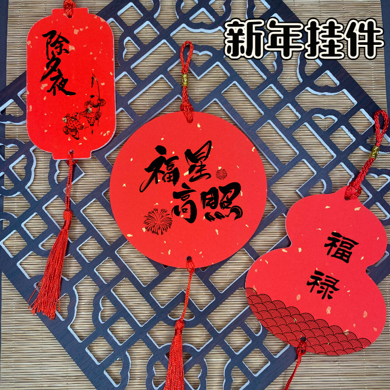 2025年福卡加厚硬卡古风红色春节吉祥祝福装饰新年小挂件福字挂饰
