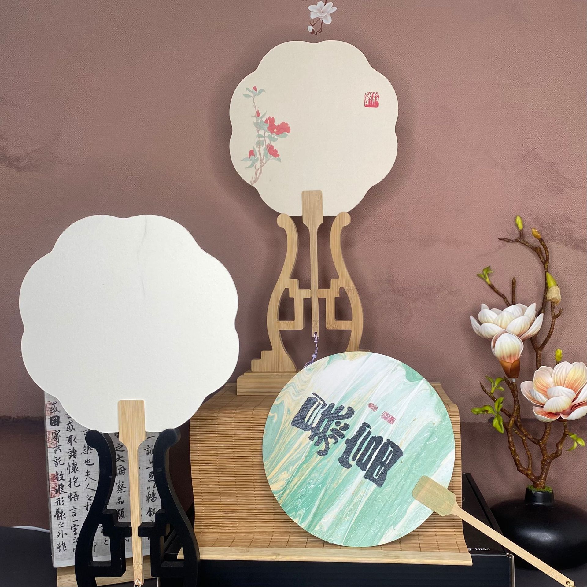 天青閣漆扇半生熟厚さ両面宣紙団扇空白宮扇水彩国画diy書道水墨