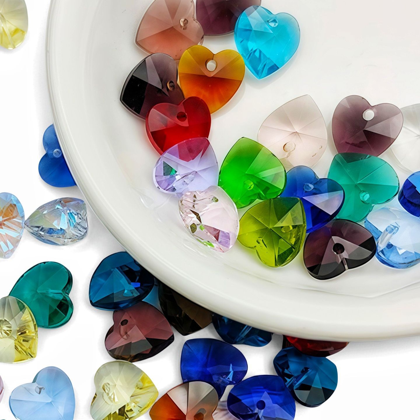 Diyビーズ部品ガラスペンダント耳片水晶単孔10mm小桃心【メーカー100個から】