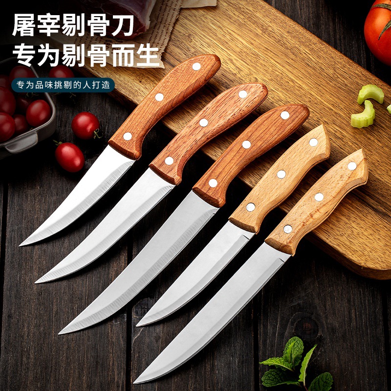 木の柄の刀の屠殺刀の骨抜きの刀の手は肉の家庭の台所の包丁のステンレスの鋭利な多機能の果物の刀を持ちます。