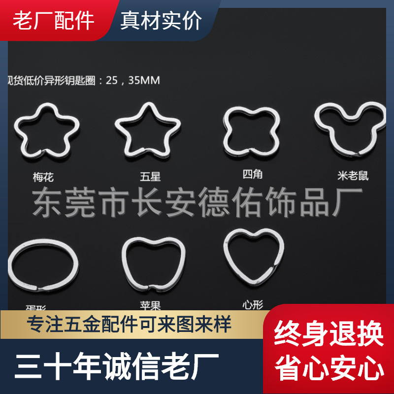 現物鍵平輪異形ハート型五角星チェーン付きキーリングリンゴミッキー卵形キーチェーン