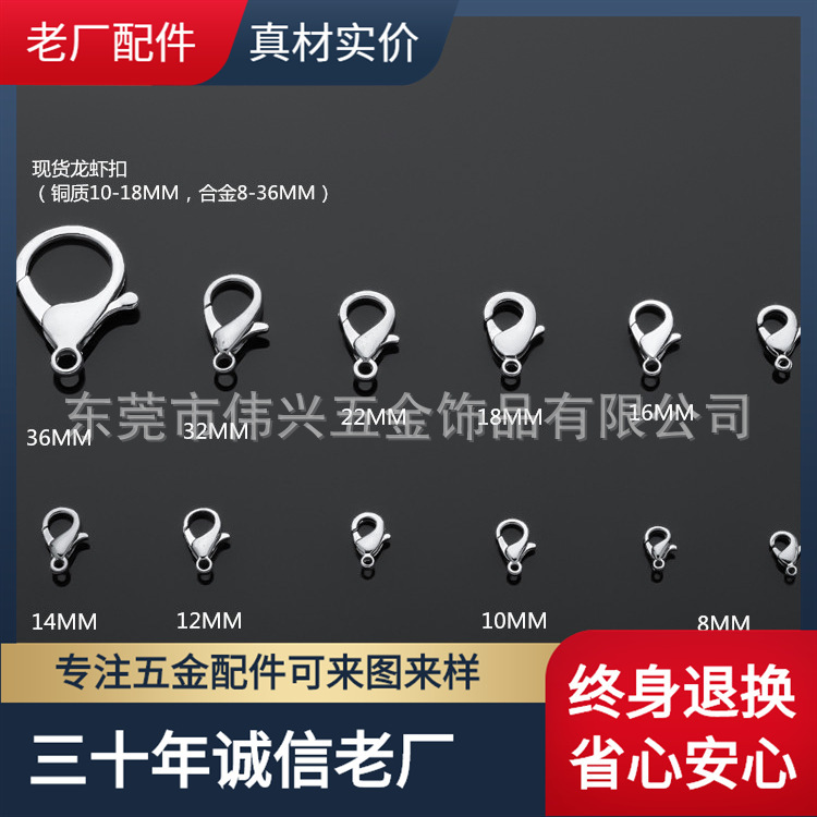 メーカー現物金属ロブスターボタン亜鉛合金模造銅ボタン長さ10 ~ 35mmステンレスロブスターボタン