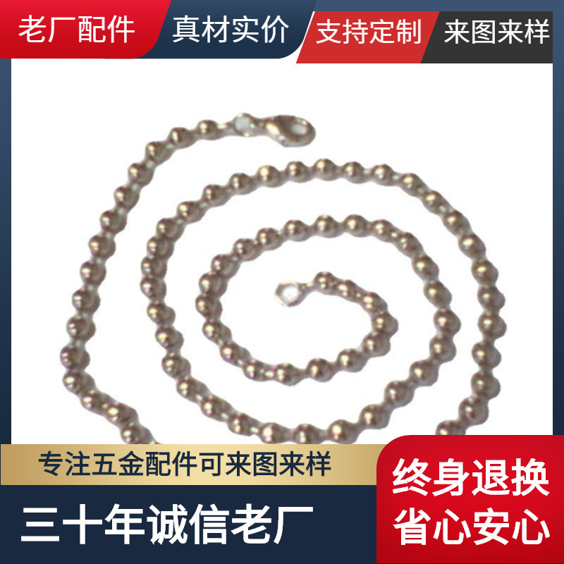メーカー直販金属白kビーズチェーン直径2.4mm波子チェーン304ステンレス玩具看板掛けチェーン