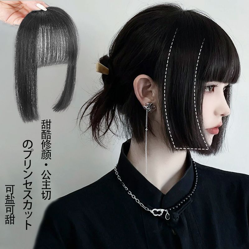 プリンセスカットウィッグ 女性用 人工毛前髪 自然な前髪ウィッグ ジーファイアスタイル 日本風二次元ミドル分け前髪