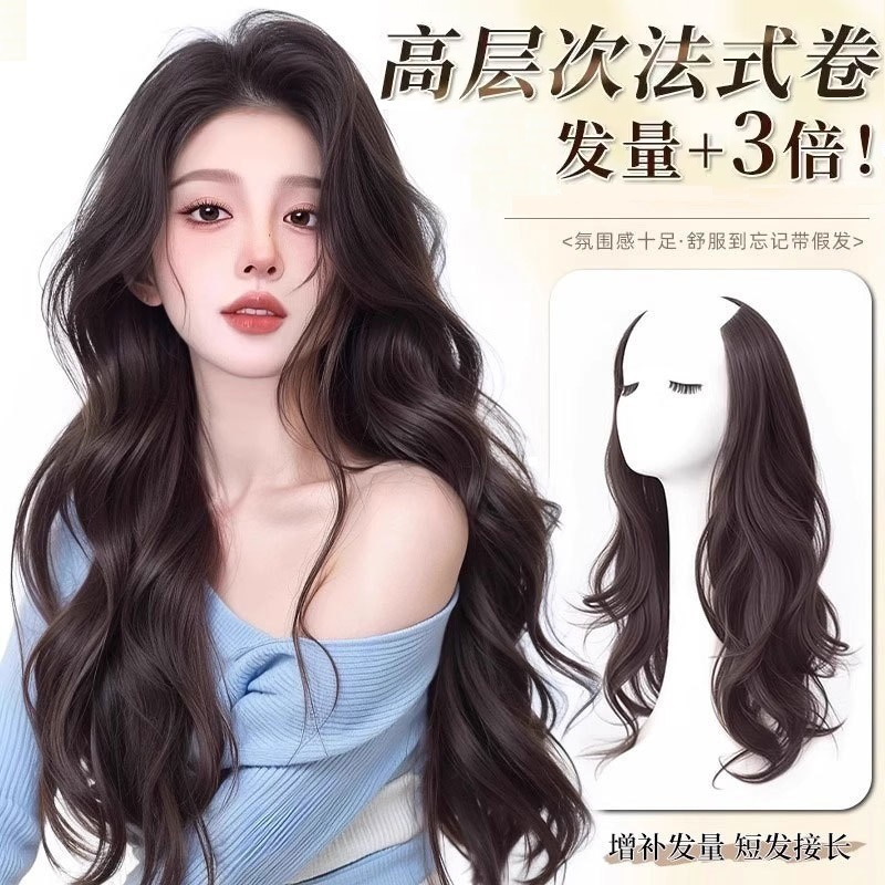 一枚式の高レベルの大きい波の髪の切れの女性の長い髪のu型はシミュレーションして跡がないで量を増加します。