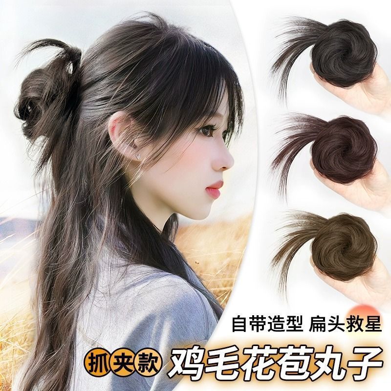 鶏の羽のミートボールグラバー女性人工毛つぼみヘッドハーフタイハイタイサイドタイ自然な髪のボリュームかつらミートボールヘアバッグ