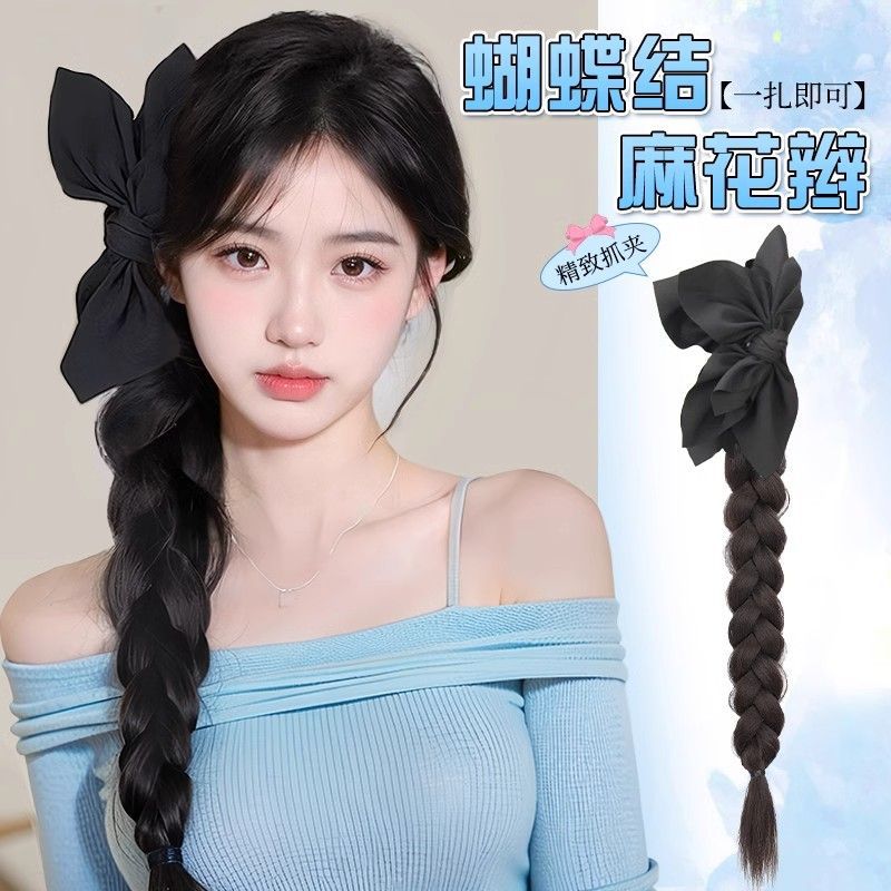 かつらのお下げのポニーテールの女性の新しい中国式のつかみの蝶結びの長い髪は自然な側の辺をシミュレーションして髪を編みます。