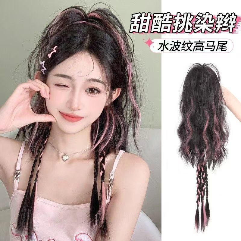 ボクシングのお下げのかつらの女性は噴水の高いポニーテールをつかんで、半分の滝の甘いクールなギャルを染めます。