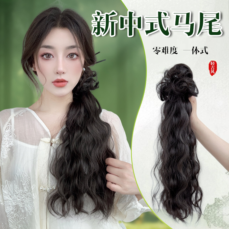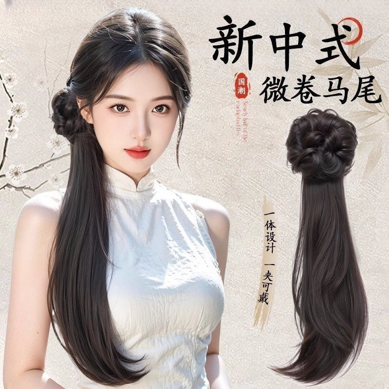 新しい中国式のかつらの女性の馬尾の軽い国風のシミュレーションの髪の微巻きは漢服のチャイナドレスの古風のかつらを挟みます。