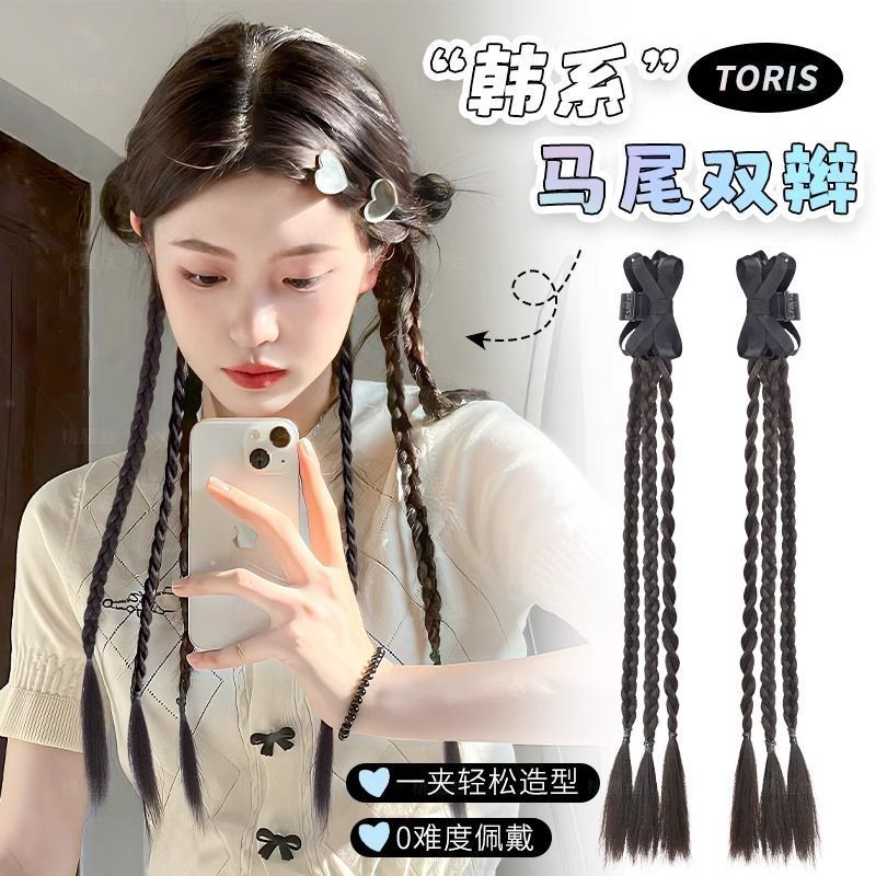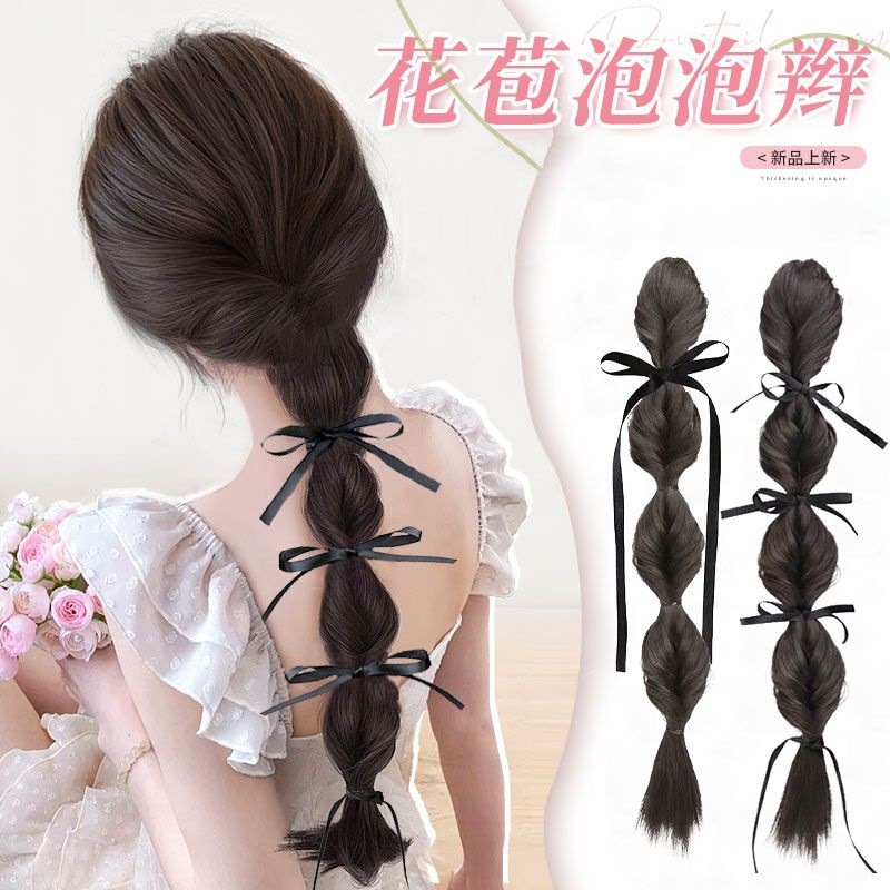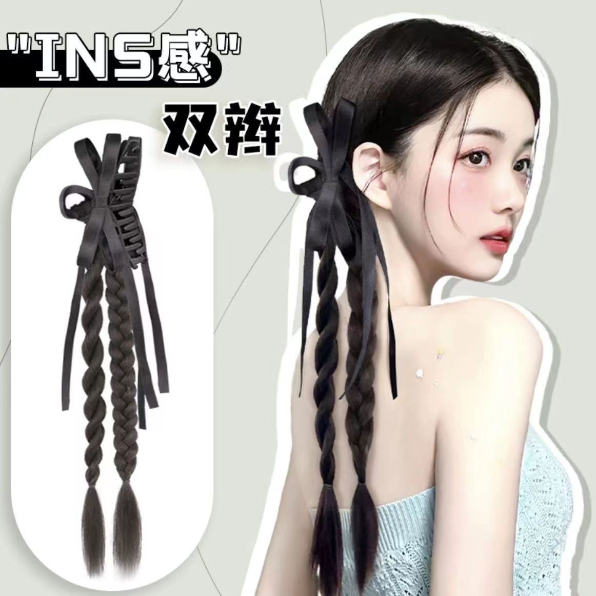 Ins風のポニーテールのかつらのお下げの子供のシミュレーションの髪のツインテールのクリップのリボンはボクシングのお下げのお下げのお下げの髪飾りを編みます。