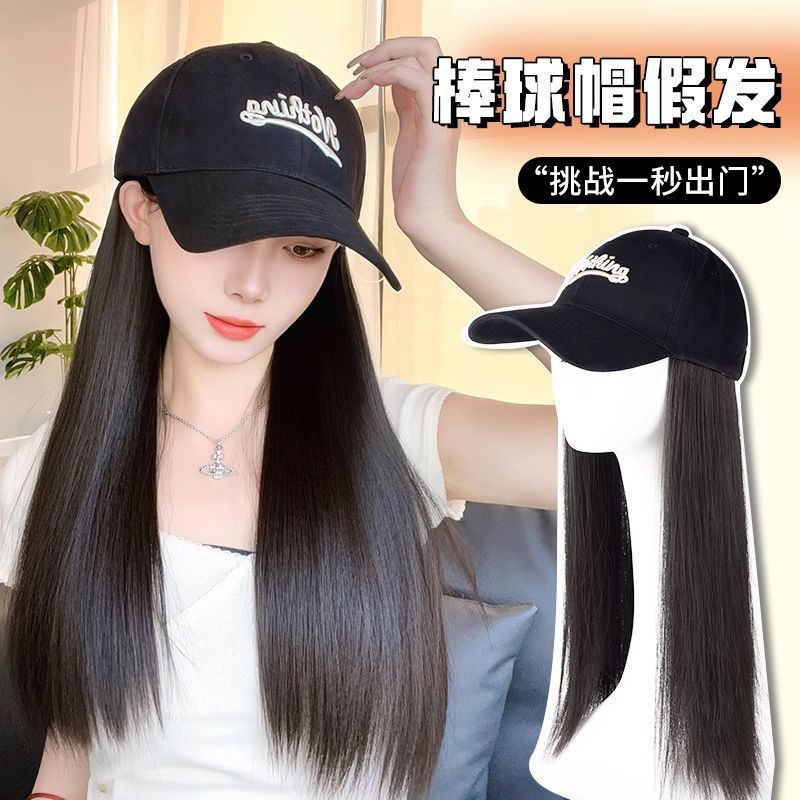 かつらの帽子の一体の女性の長い直髪の野球の帽子のシミュレーションの髪のファッションの百合は自然にリアルに顔の小さい全体のカバーを現します。