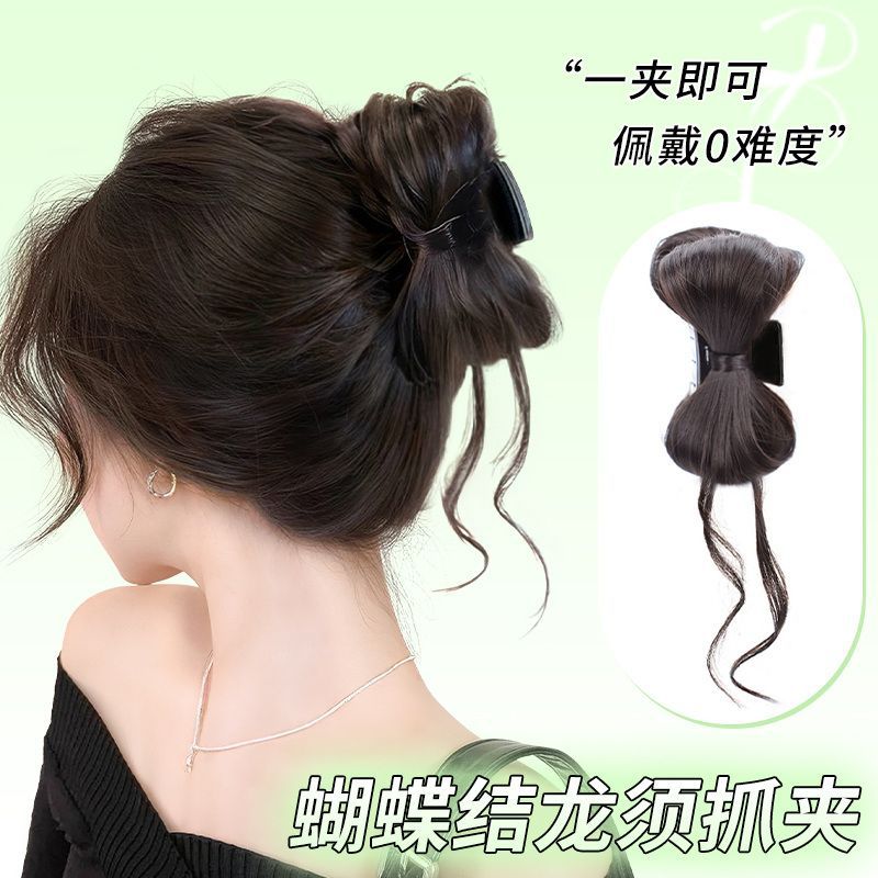 蝶結びの竜のひげは団子の頭のかつらをつかんでシミュレーションします。