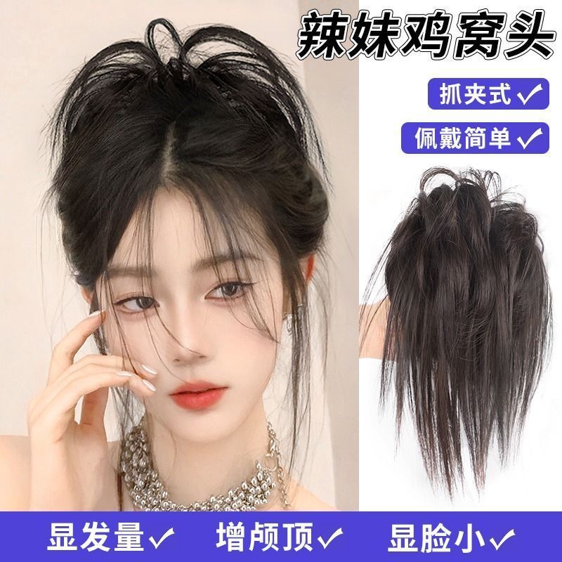 鶏の巣の団子の頭のかつらはふわふわしていて、自然でだらだらしています。