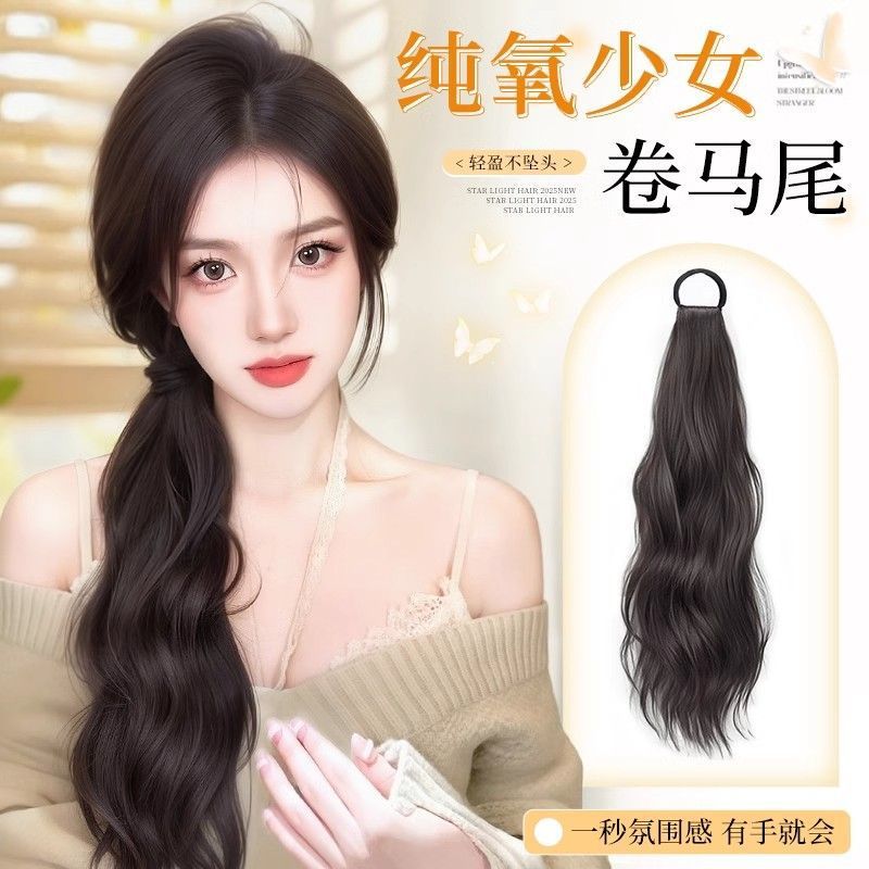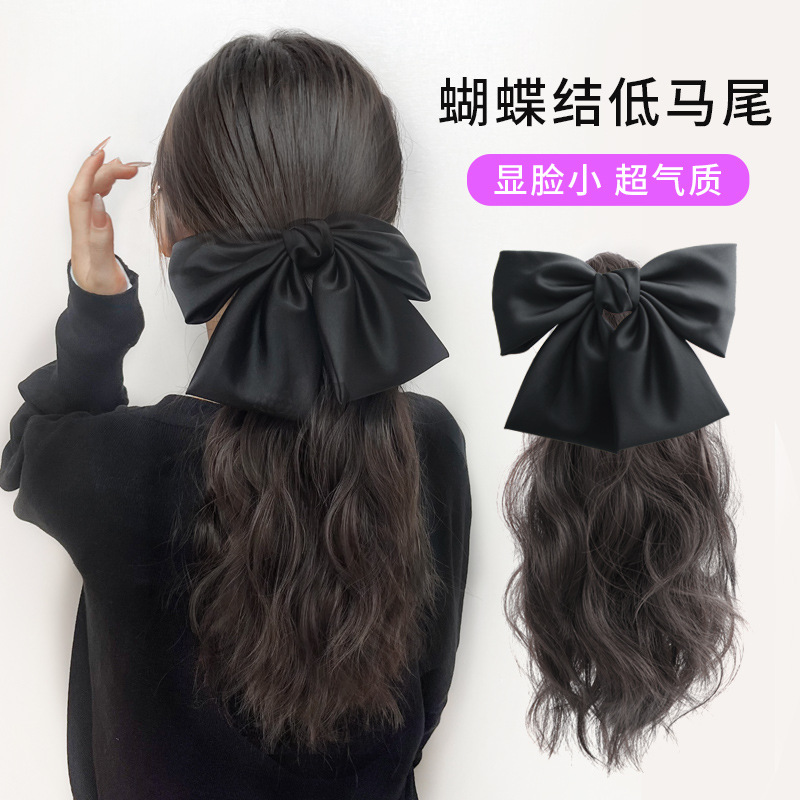ポニーテールの長い髪は雲を挟んで、高いポニーテールの女性は髪の毛の波紋の巻き髪の蝶結びをします。